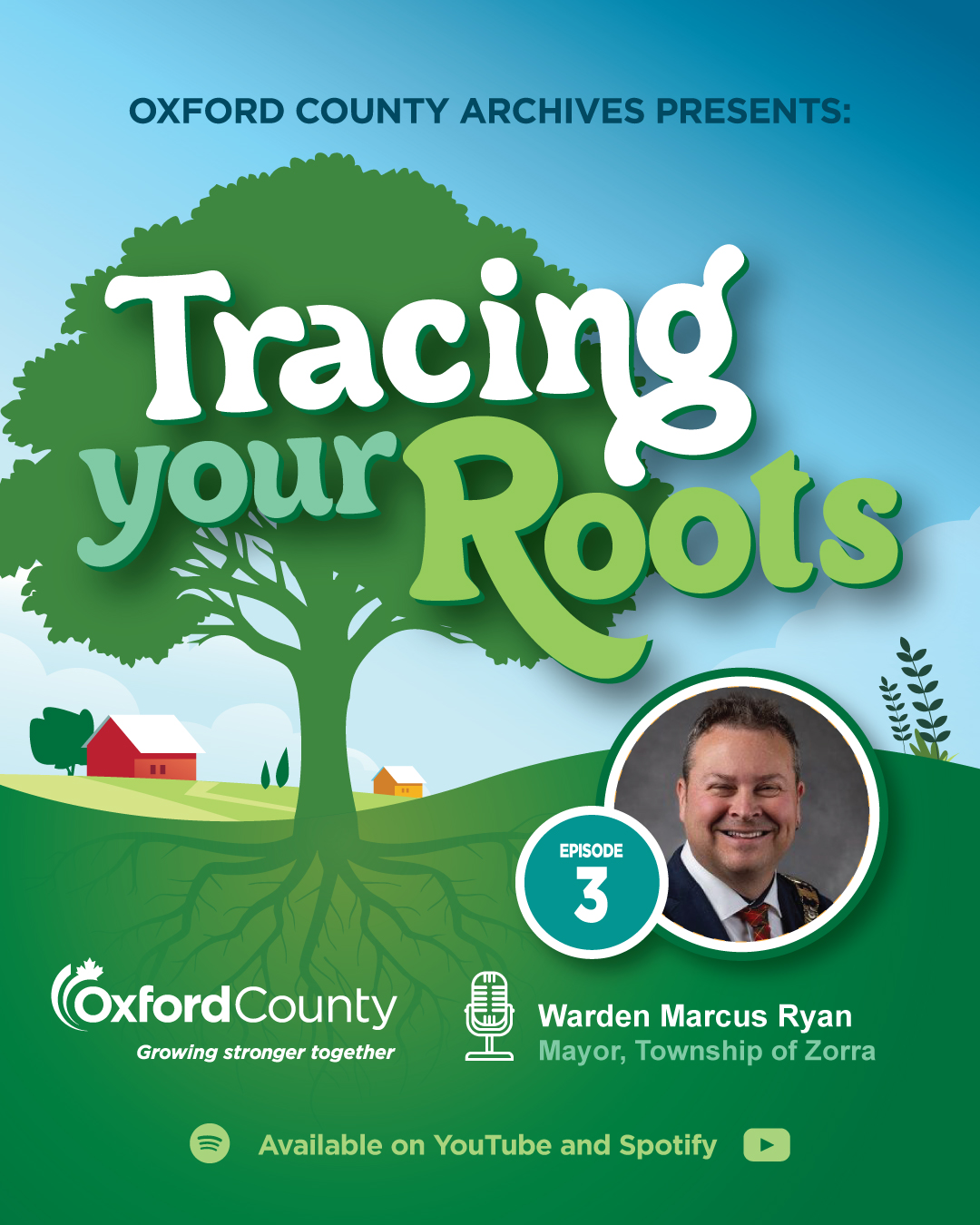 Episode three of Tracing Your Roots, featuring Oxford County Warden Marcus Ryan, is now available on YouTube and Spotify.