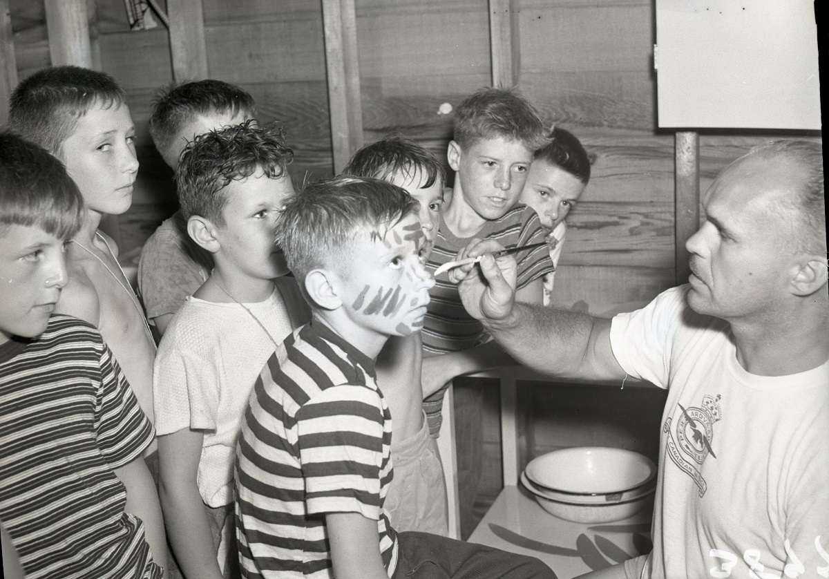 Ron Ludwig getting painted at Glen Fisher's Camp [CAO123 1-102]